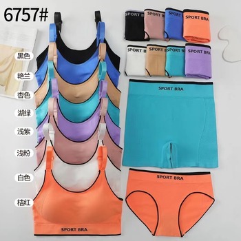 Rahat kızlar kablosuz bayanlar iç çamaşırı kadın dikişsiz yumuşak nervürlü pamuk nefes yastıklı Wirefree spor Yoga sutyen seti