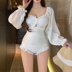Hàn Quốc bán buôn chanelstyle của phụ nữ Puff tay áo beachwear Đồ bơi áo tắm kẻ sọc mô hình Spandex/nylon chất liệu